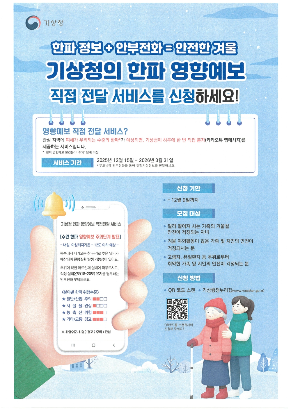 기상철의 한파 영향예보 서비스 신청 안내 상세보기