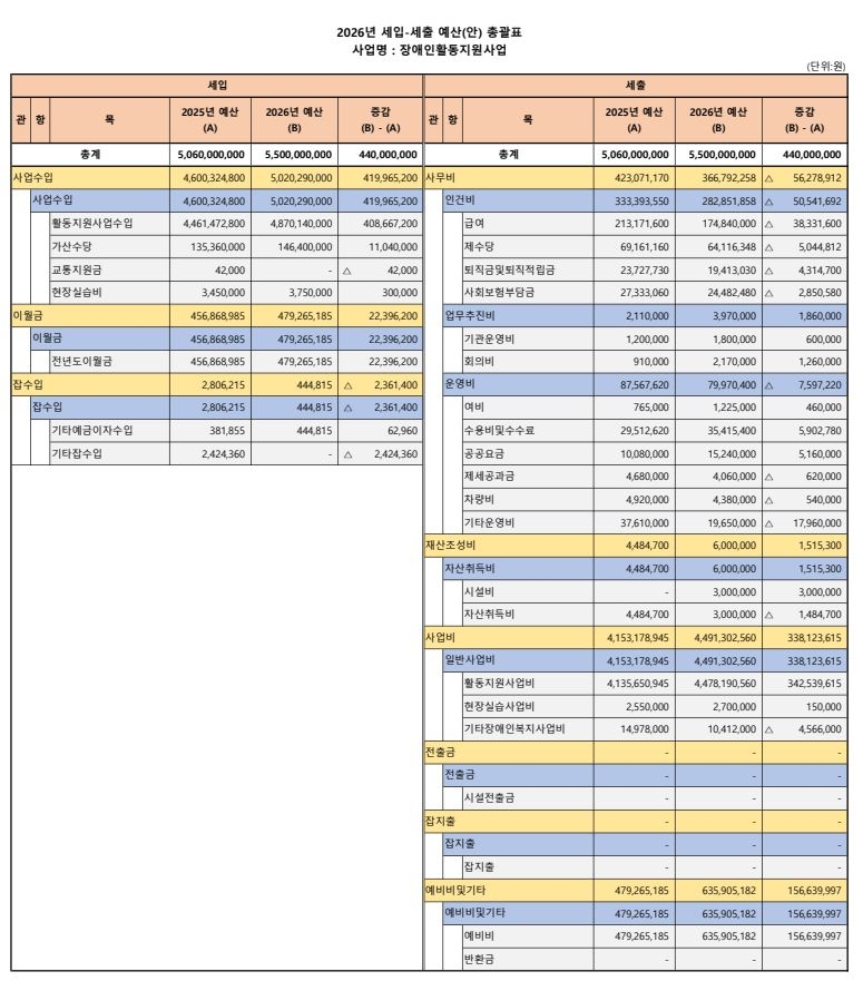 장애인활동지원사업 관련 2025년 제2차 추경예산(안), 2026년 예산안을 홈페이지 공고 합니다.