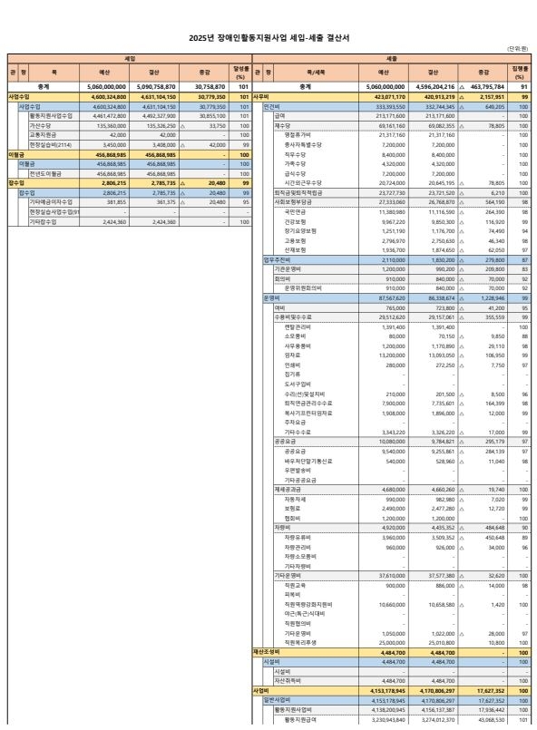 2025년 장애인활동지원사업 세입·세출 결산 보고를 공고합니다.